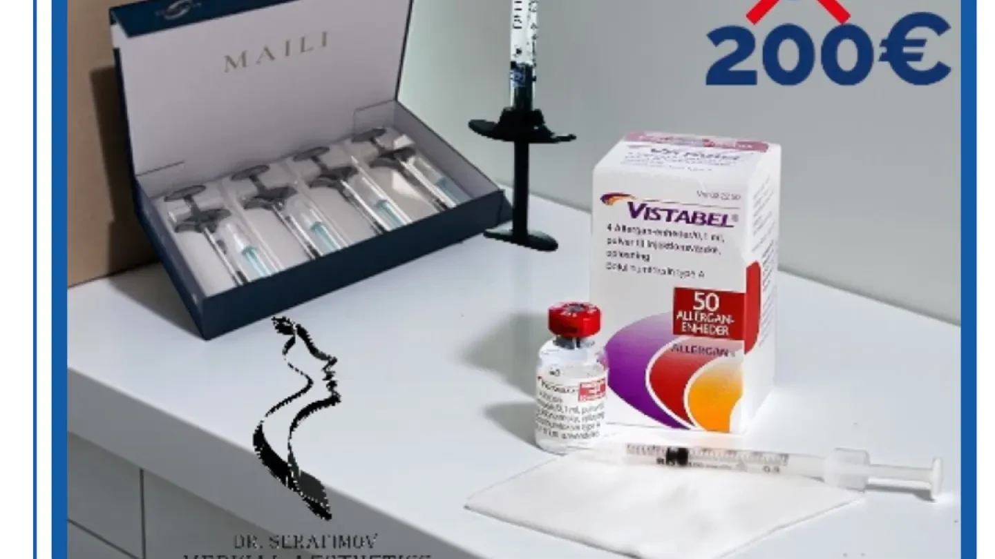 👄 Хиалуронов филър MaiLi Define Lidocaine 1.0 ml е идеалното решение за оформяне на естествени, пухкави и натурални устни, корекция на фини марионетни и периорални линии Сега с -20% отстъпка вместо 250 € (488,96 лв.) е на цена от ✅200 € (391.17 лв.) 💉 Ботулинов токсин на чело, гневна бръчка и пачи крак Сега с -20% отстъпка вместо 250 € (488,96 лв.) е на цена от ✅200 € (391.17 лв.) 😍 Не пропускай и другите наши предложения на колагенови стимулатори, скинбустери, мезотерапии и др.